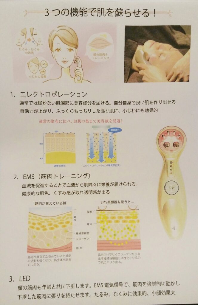 更に、顔筋運動EMS機器を使用し、たるみ、むくみの気になるお顔にアタック